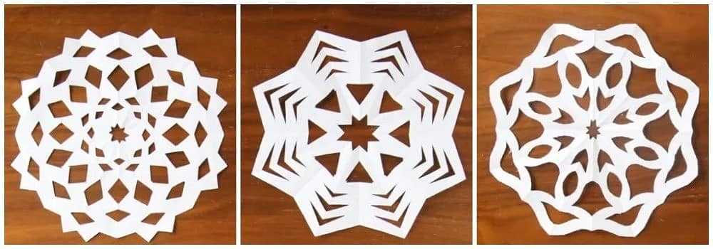 Нужно следить за тем, чтобы получались именно снежинки, а не кружевные салфетки. Для этого нужно оставлять как можно меньше бумажных частей и всевозможных округлостей.