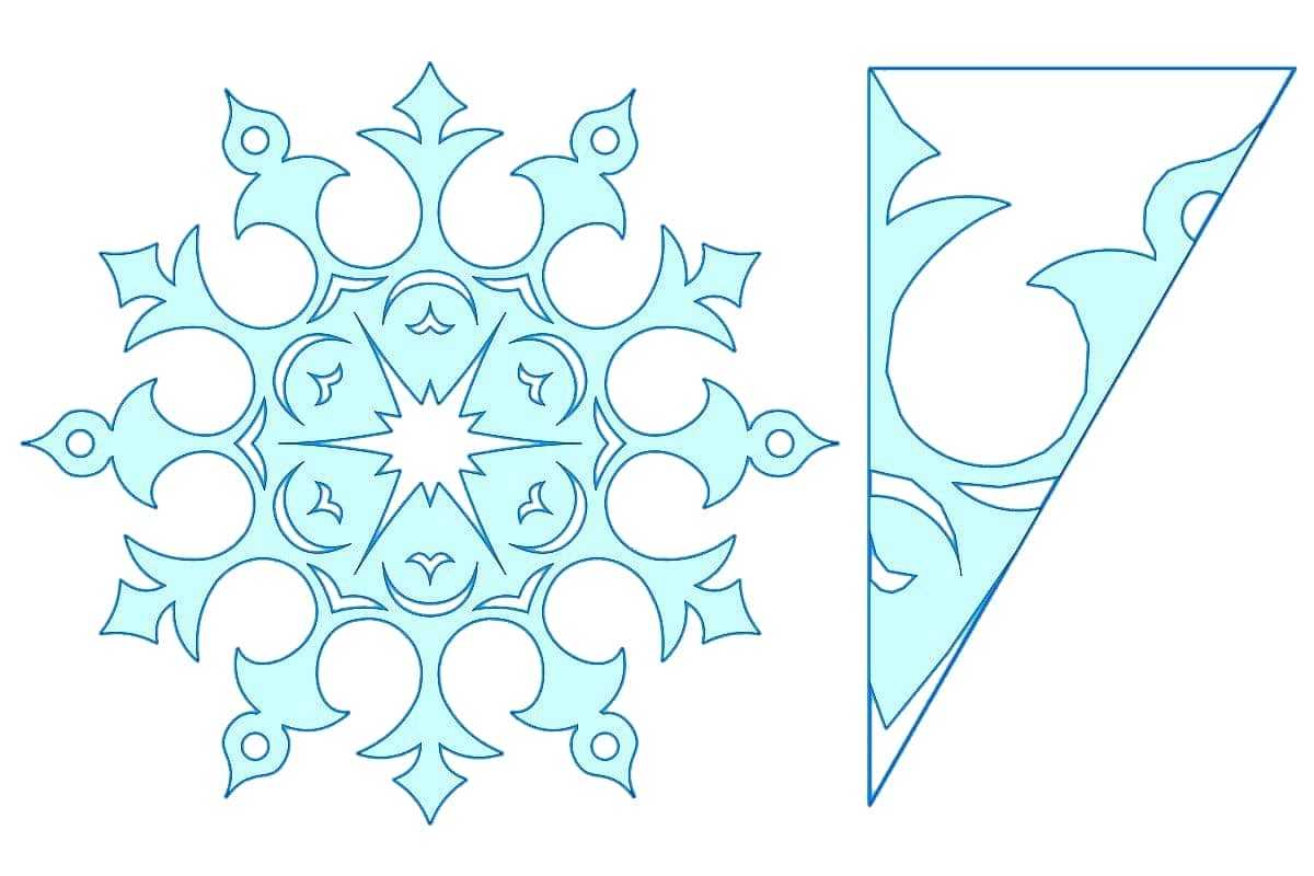 Остроконечная бумажная снежинка: трафарет для вырезания