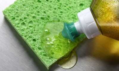 Многие ещё прибегают к жидкости для мытья посуды. Она обычно стоит на видном месте, что даёт быстро среагировать на загрязнение. Нанесите небольшое количество, подождите несколько часов. Тщательно протрите тряпкой или щёткой, промойте в воде. Средство может помочь, так как содержит расщепляющие жиры вещества.