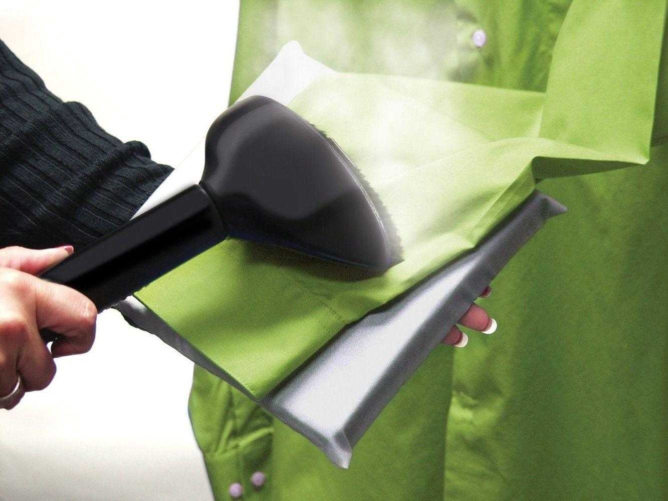 Обрабатывать одежду нужно от верха к низу. Для более качественного эффекта следует немного натягивать ткань. Для хранения устройство легко разбирается.
