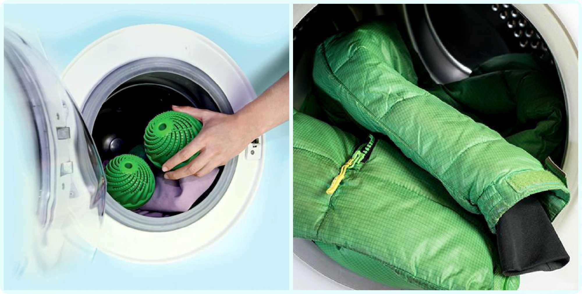 Используйте специальные приспособления для стирки пуховика в стиралке.