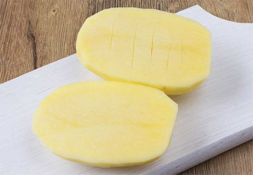 - Далее разрезают вымытую картофелину, протирают пятно от масла срезом.
