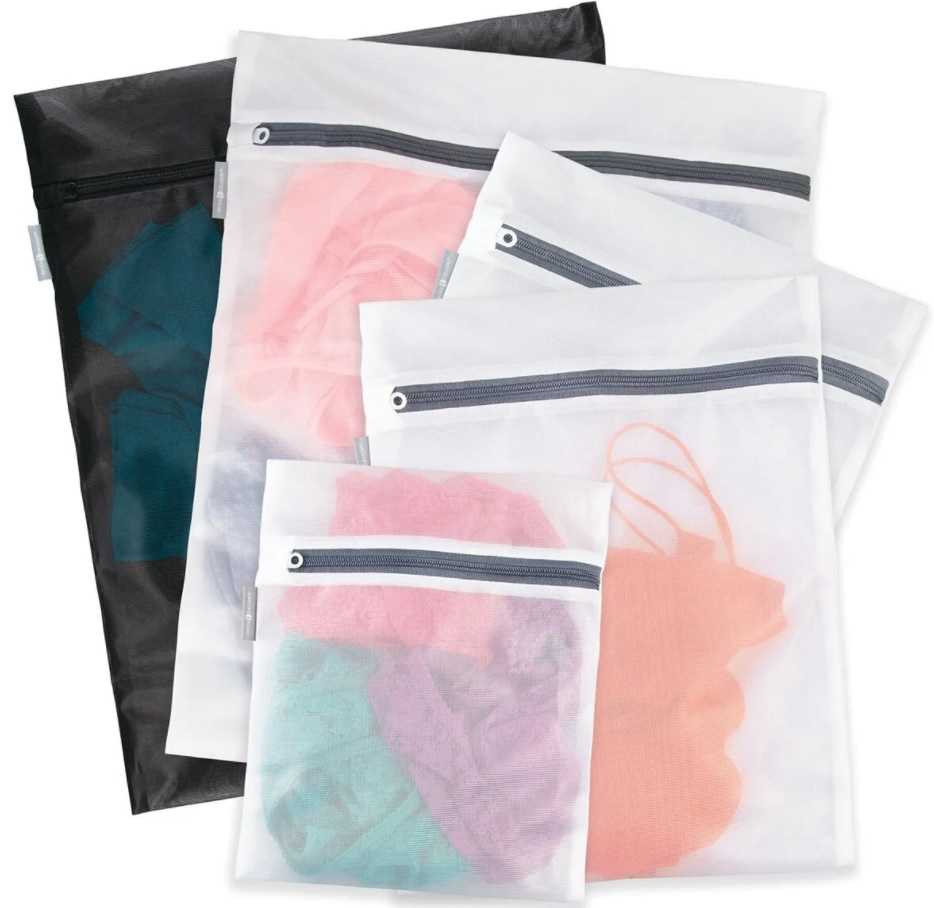 Оптимальный вариант для экономных и запасливых пользователей. Комплект из 5 сеток охватывает все возможные вещи (от белья до гардин и тюли, постельного набора). Прочный дышащий материал не препятствует проникновению воды и моющего средства внутрь. Быстро высыхает и готов к повторным манипуляциям. В сравнении с аналогичными изделиями не теряют форму после нескольких применений. Можно использовать для хранения одежды в чемодане или шкафу.
