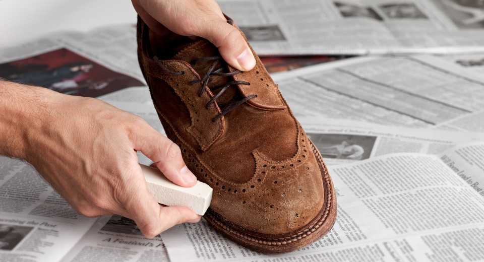 Пыль и небольшие загрязнения с замшевой обуви лучше всего удалять специальной резиновой щеточкой. Если такой нет под рукой, то можно воспользоваться обычным ластиком.