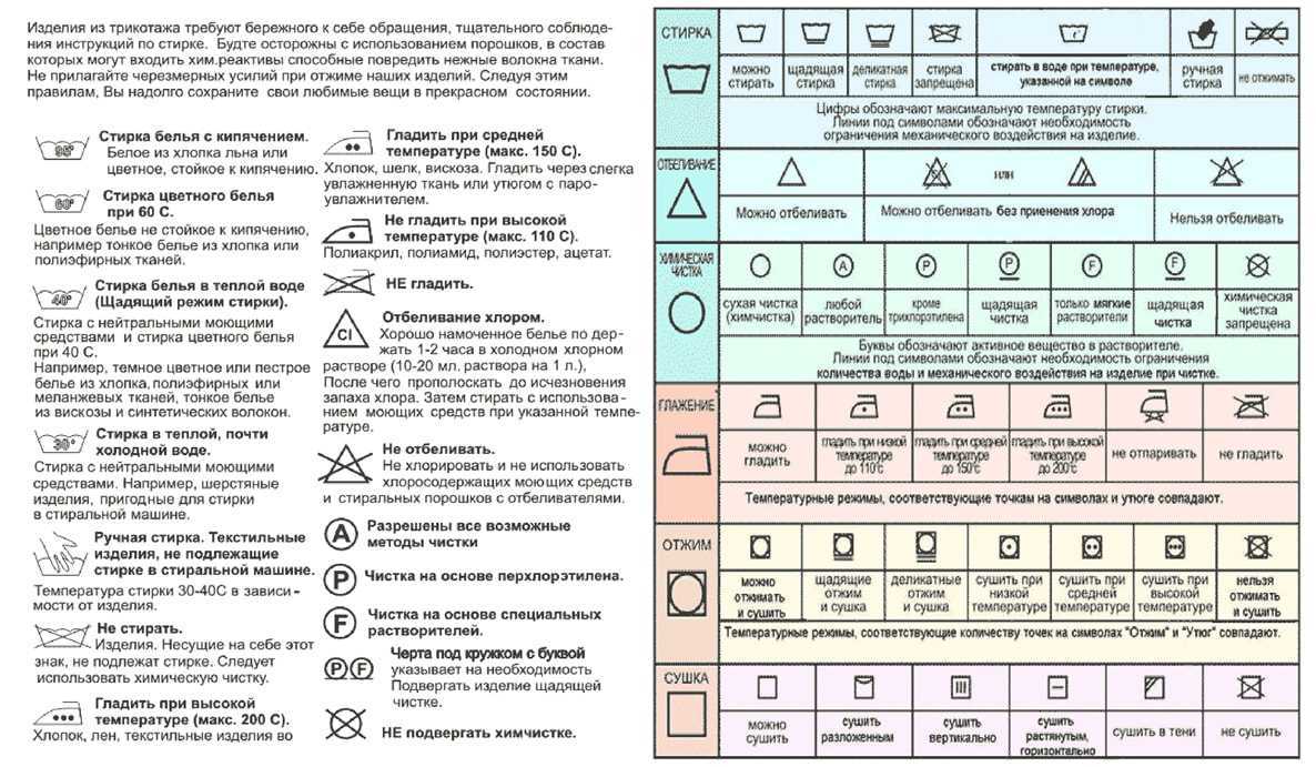 Символы являются международным обозначением. Это значит — где бы вы ни купили вещь, на ярлыке будут знакомые изображения