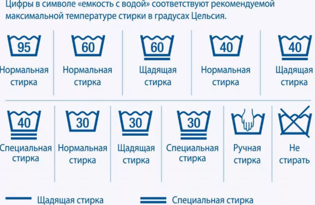 Понимая значение символов, можно правильно подобрать режим стирки, температуру глажки и определить возможность проведения химической чистки или отбеливания.