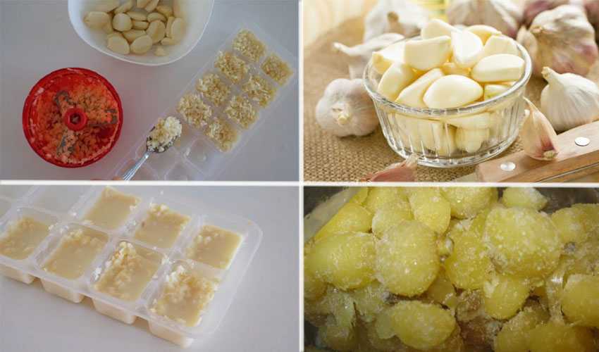 - Зубчики измельчают, после чего раскладывают полученную массу по формочкам для приготовления льда и отправляют в морозилку.