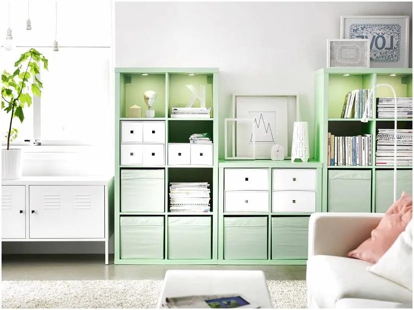 Попробуйте использовать стеллажи. На них могут уместиться книги, различные статуэтки и фотографии, некоторые небольшие приборы. Кроме того, стеллажи можно использовать не только для хранения, но и для зонирования пространства, они могут выполнять функции лёгких условных перегородок.