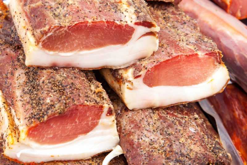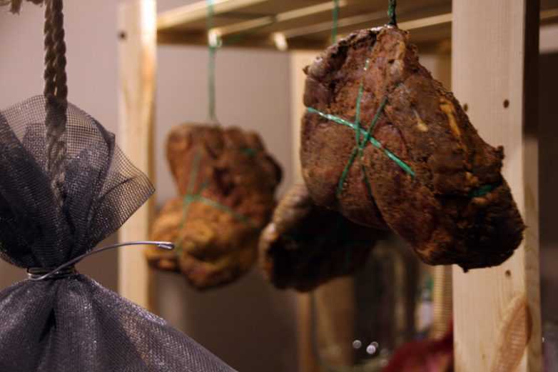 Вяленое мясо в виде целого окорока хранят по таким правилам: