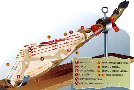 В идеале длина кусочков должна составлять 6 сантиметров. Тогда ломтики получаются нежными и удобными для употребления. Нарезка должна иметь очень малую толщину. При соответствующей сноровке кортадора ломтики получаются прозрачными. Нарезка ведётся так, чтобы по краям оставалась жировая прослойка.
