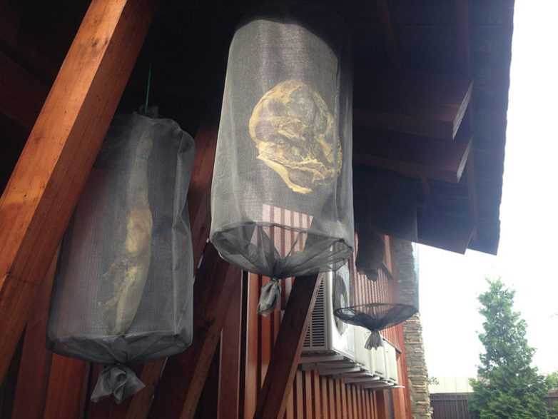 - Мясо нельзя прокалывать и надрезать в процессе вяления. Любое повреждение может привести в порче продукта;