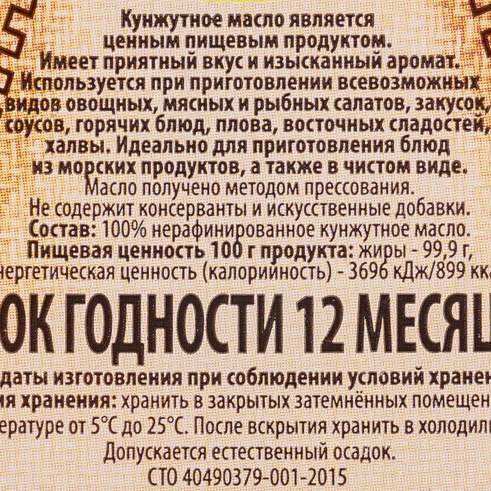 Срок хранения зависит от многих факторов, включая сорт и качество продукта. При покупке масла из кунжута обязательно следует проверить дату производства, указанную на упаковке, а также дату до которой рекомендуется его использовать. При правильном хранении нераспечатанный сосуд может храниться примерно 1,5-2 года после производства. Однако, если посуда уже открыта, срок годности резко сократится – примерно в два раза по сравнению с первоначальной датой, указанной на таре. Неизменность качества и полезных свойств будет зависеть от того, в каких условиях оно хранится.