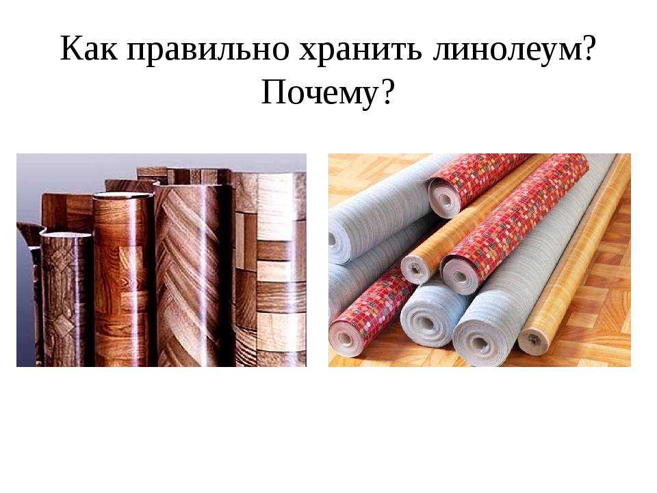 Хранить его лучше вертикально, чтобы волокна смогли выпрямиться и разгладиться. Ни в коем случаем нельзя класть влажные тряпки на линолеум, так как он может начать гнить. А обувь с резиновой подошвой или даже просто с набойками может оставить на нем темные следы, которые отмыть практически невозможно.