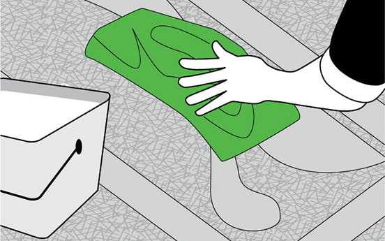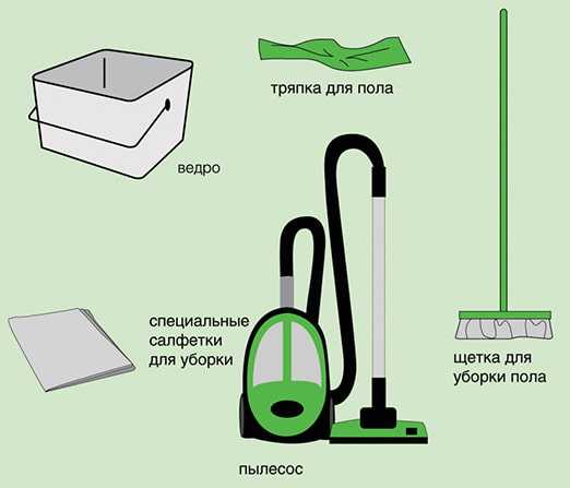 Начинается уборка с сухой чистки линолеума, которая удаляет мусор и пыль. Это делают с помощью щетки и пылесоса. После этого нужно осмотреть полы на предмет наличия пятен. Если они есть – вывести с помощью подходящих средств.