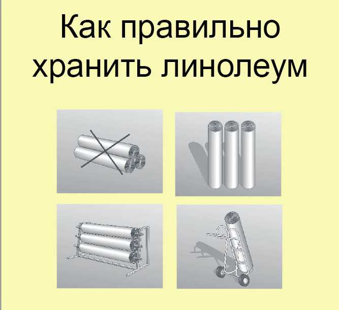 - Уложить линолеум горизонтально, но лучше установить вертикально на поверхность пола, если позволяет высота потолка. Вертикальное хранение более правильное. Чаще, конечно, приходится пользоваться горизонтальным, т.к. 4-метровые потолки нечастное явление.