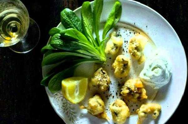 Если хотите чистый вкус – жарьте без овощей, в кляре. Обмакиваем каждый моллюск в яичную массу, обсыпаем мукой и во фритюр. Кушать такое блюдо лучше горячим.