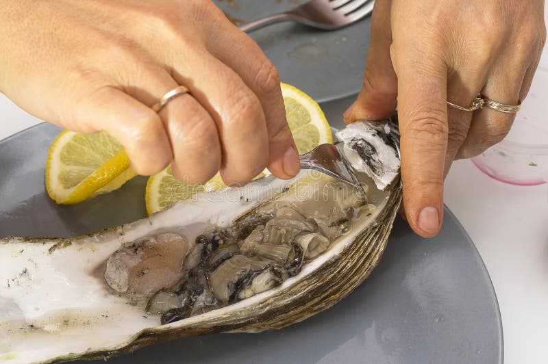 Перед тем как отправить устрицу в рот, вилочкой открепляют ее мясо от раковины и поливают лимонным соком. Проглатывают моллюск вместе с жидкостью и добавками, не разжевывая, и запивают при этом вином.