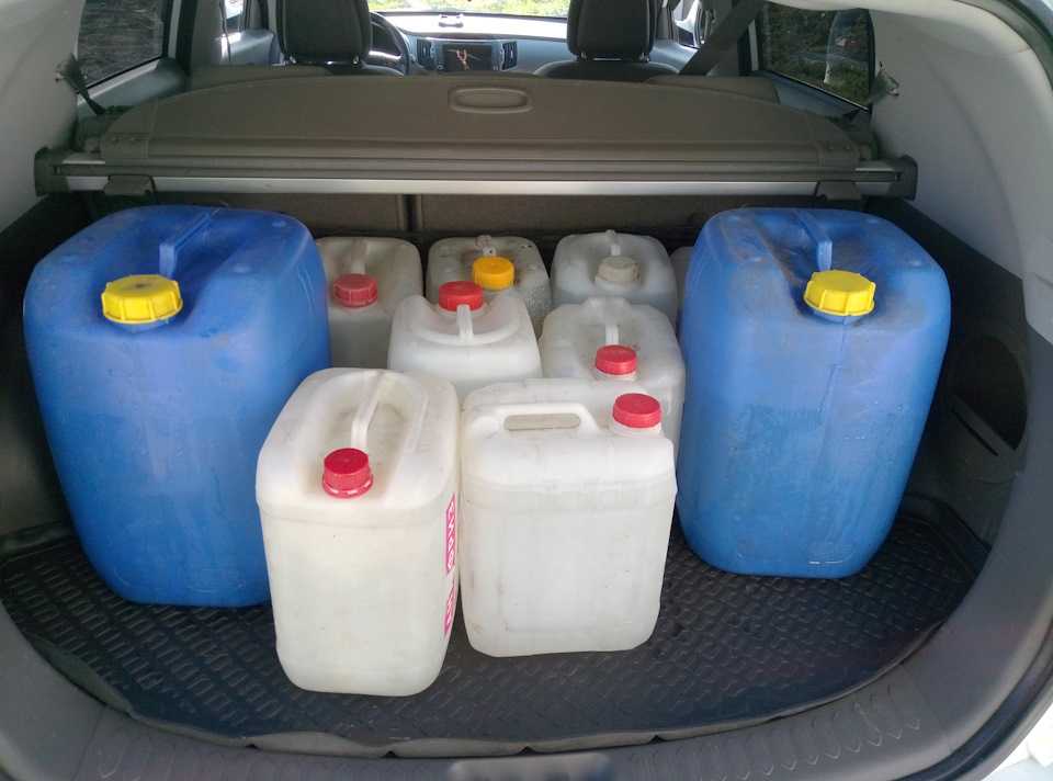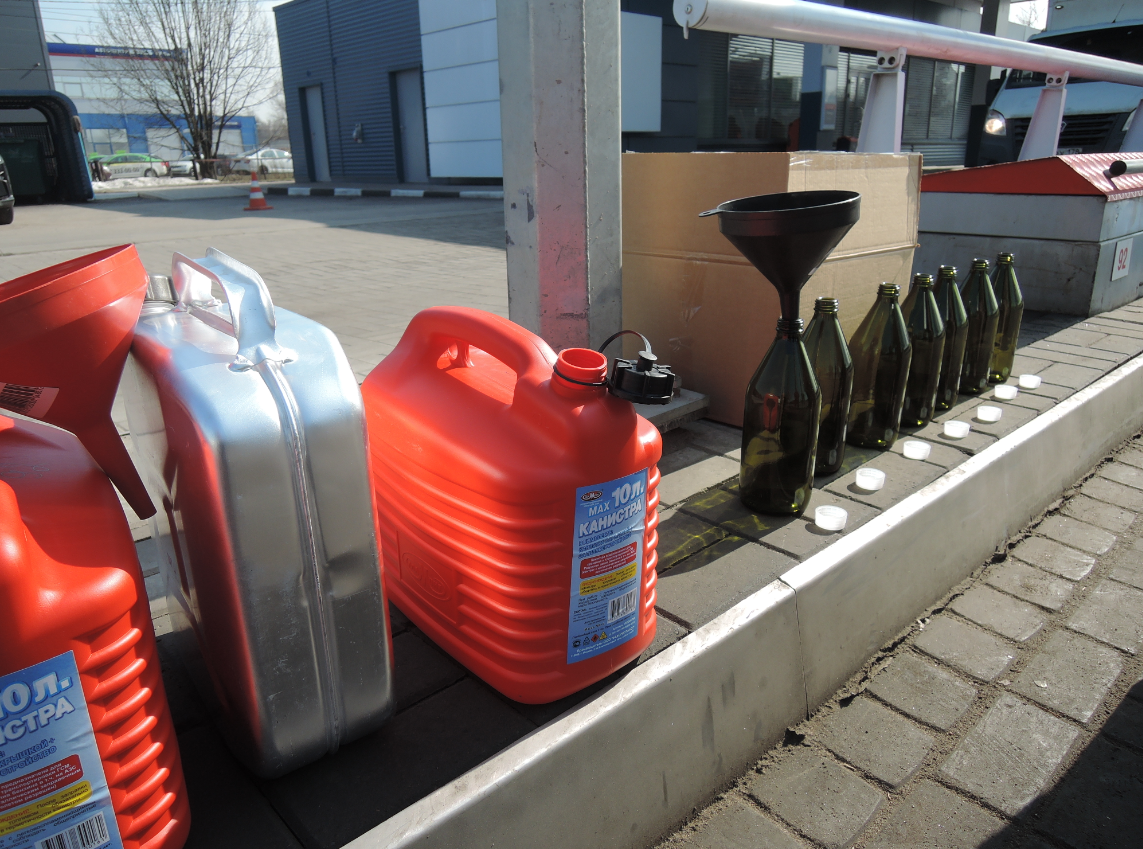 Пластиковая бутылка – не используется вовсе, даже при однодневном хранении. Даже сотрудники АЗС отказываются заполнять такую ёмкость. Для экстренных случаев нужно иметь в автомобиле специальную металлическую и пластиковую тару.
