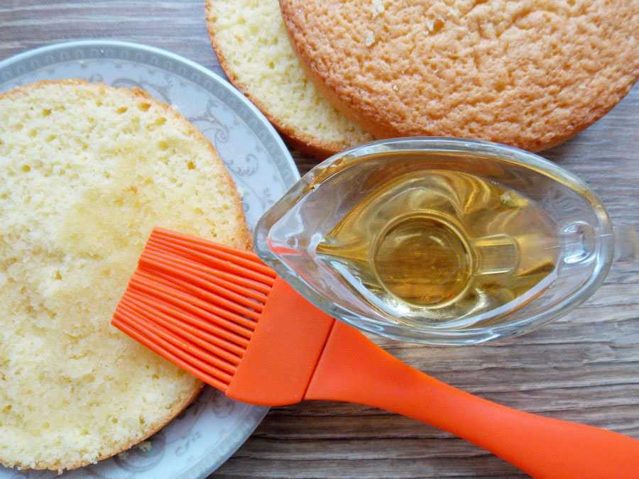 Если будут использоваться фрукты, ягоды, то количество сиропа уменьшают, иначе коржи размокнут.