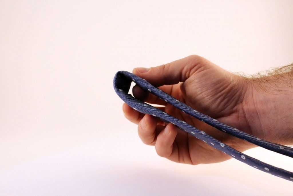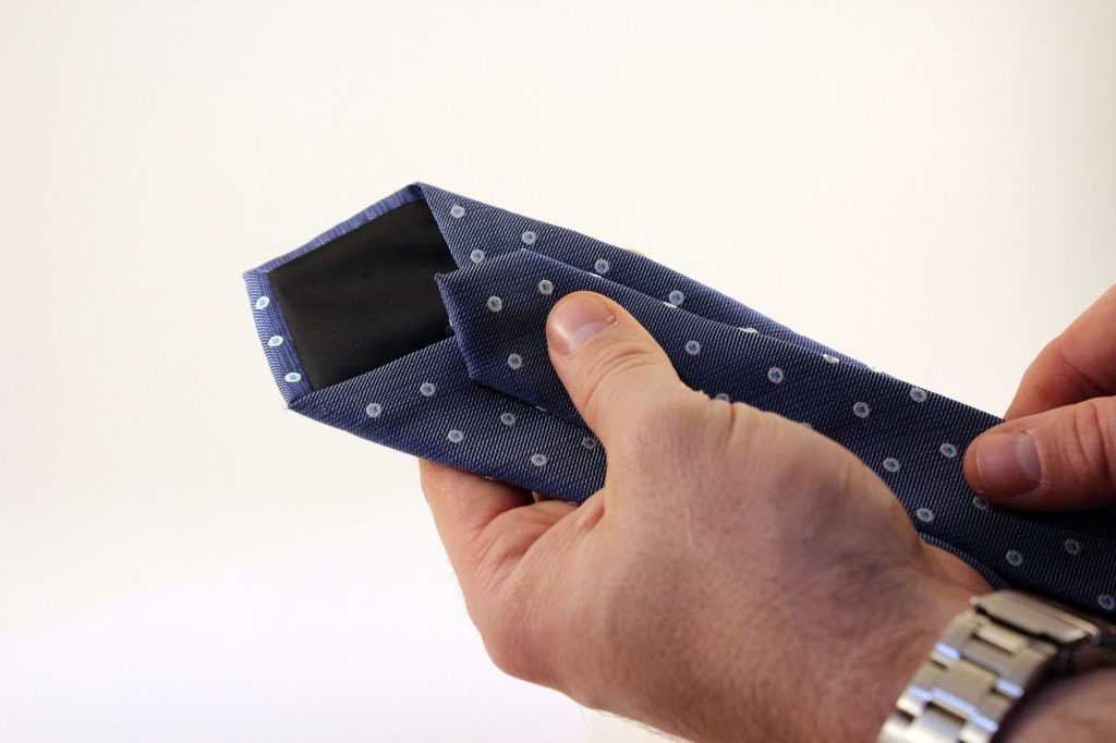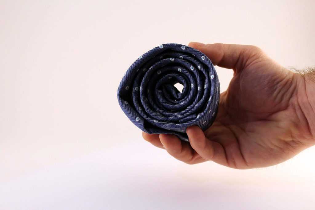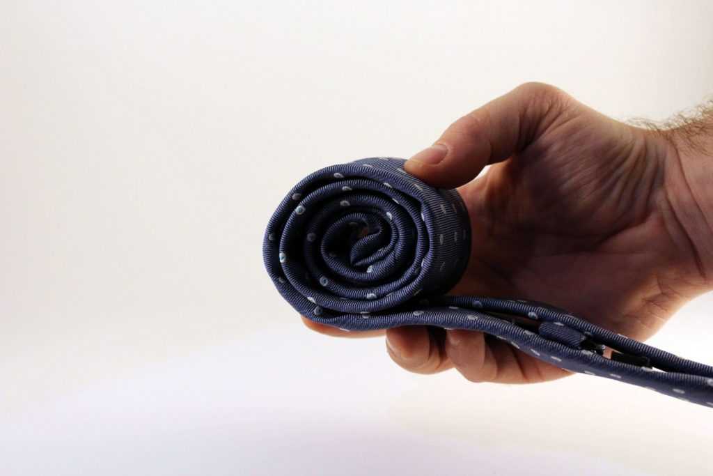 Свернув галстук таким образом, вы предотвратите его загрязнение передней части во время хранения.