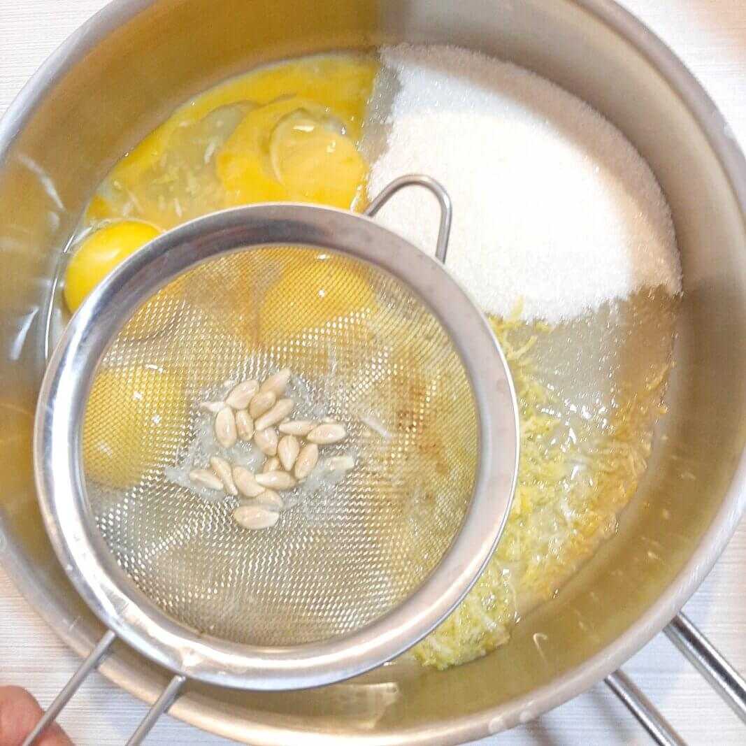 Для удаления лимонной цедры можно пропустить готовый лимонный курд через сито.