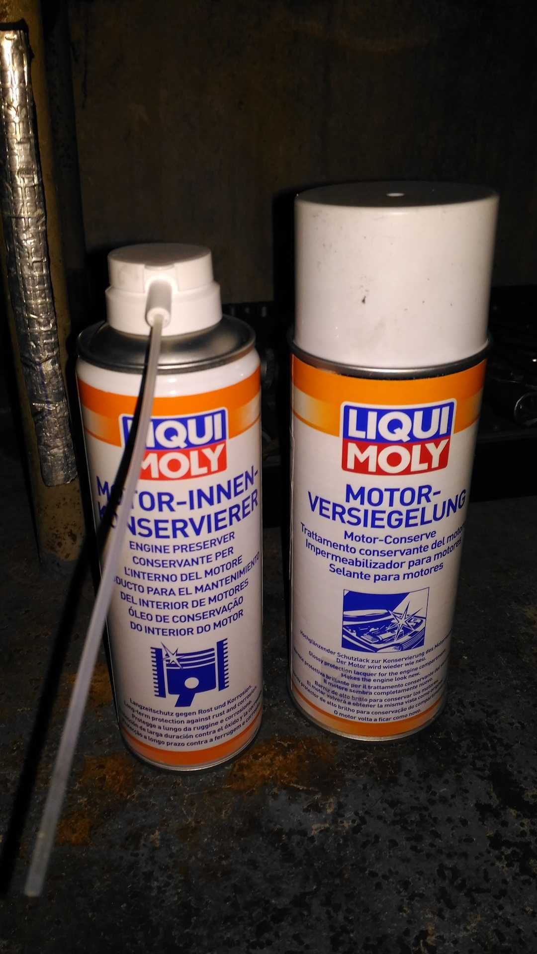 Подробная инструкция по применению прилагается к баллону с консервантом и совсем не сложно следовать этим указаниям. По завершении действия консерванта (самопроизвольная остановка двигателя) можно порекомендовать вывернуть свечу зажигания и распылить немного консерванта непосредственно в камеру сгорания.