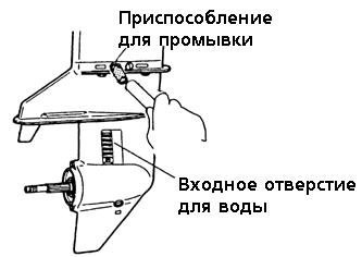 Для промывки таких двигателей вполне подойдет большая бочка. Главное проконтролируйте чтобы бочка была достаточного размера и вода в ней была выше уровня отверстия всасывания воды для охлаждения. Оно расположено в нижней части ноги мотора