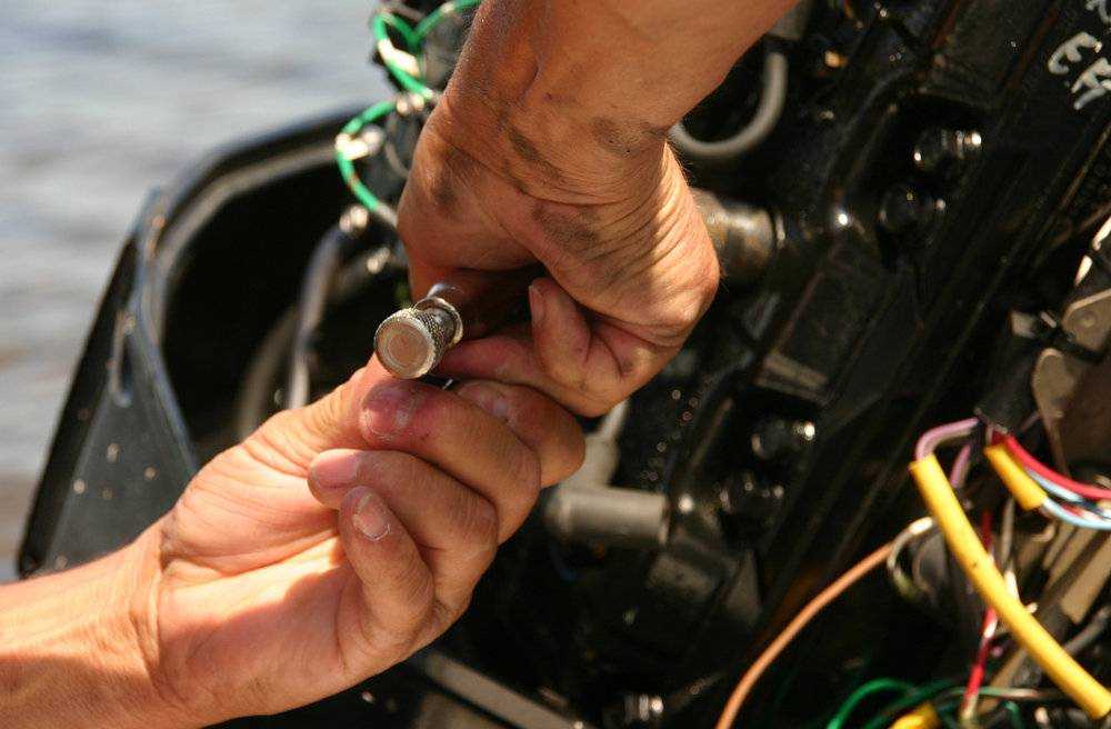 Перед тем как начать, чтобы избежать случайного запуска, лично проверте, чтобы ключ запуска двигателя, и свечи внутреннего сгорания были удалены до начала работ. В большинстве случаев лодочные подвесные моторы охлаждаются водой. Пуск и работа двигателя без охлаждения водой неминуемо приведет к его повреждению.
