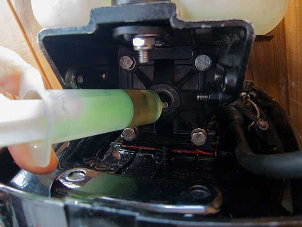 Перед тем как поменять масло в редукторе, осмотрите нижнюю часть дейдвуда (винт и гребной вал). Если сальники гребного вала вышли из строя, это сразу станет заметно по потекам масла.