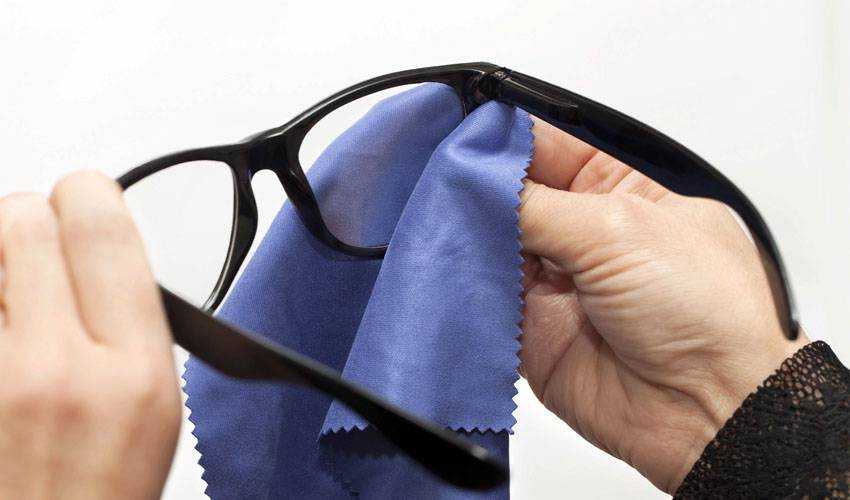Специализированные средства для удаления загрязнений — салфетки из нетканого микроволокна или одноразовые влажные салфетки — помогут эффективно ухаживать за очками. Преимущества микрофибры в том, что протирки она не оставляет волокон после, способных поцарапать линзы очков. Ее способность к впитыванию воды и пыли выше, чем у обычной ткани. Время от времени салфетку необходимо стирать для очистки от накопившейся пыли и грязи.