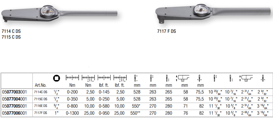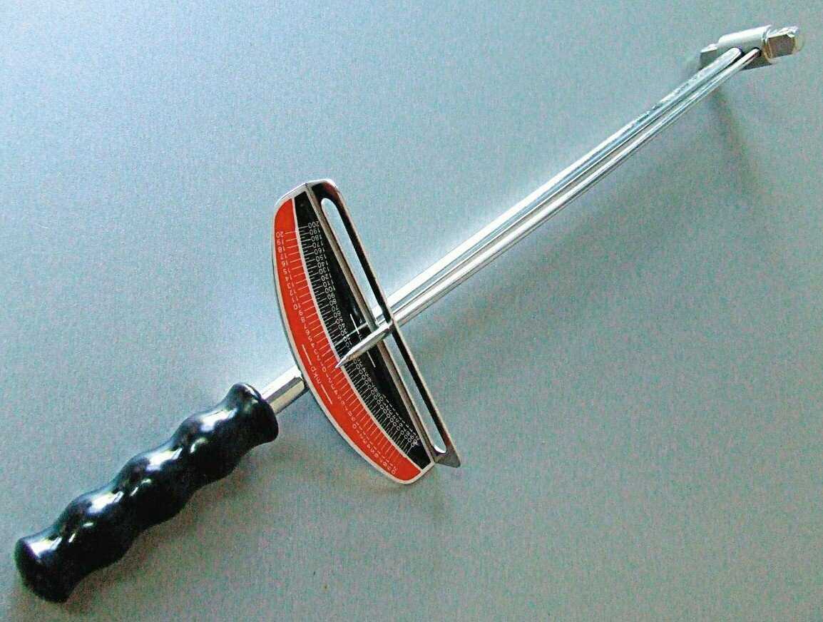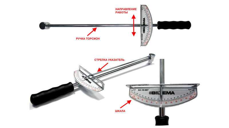 Такие ключи имеют характерную особенность – крупные габаритные размеры. Непосредственно у самой рукоятки имеется шкала, по которой и производятся необходимые измерения. Предварительно настроить данный ключ не получится, результат затяжки достигается по факту.