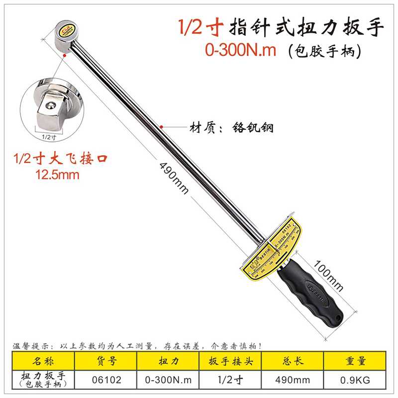 В свою очередь, ключи с одной стрелкой делятся на индикаторные и измерительные. Первые имеют шкалу в виде круглого циферблата, усилие показывает стрелка, вращающаяся вокруг центральной оси. Измерительный ключ снабжён шкалой с делениями, расположенной поблизости от рукояти. Величину усилия показывает длинная стрелка, которая отклоняется от нулевого значения при затягивании болта. Оба варианта просты и удобны в пользовании, но требуют постоянного визуального контроля со стороны оператора.