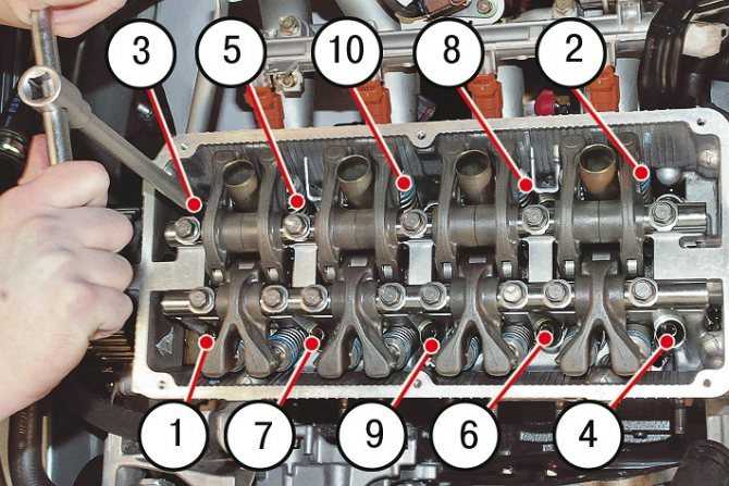 У каждого двигателя свой порядок затягивания, который необходимо соблюдать, чтобы обеспечить равномерное притягивание головки к блоку и исключить возникновение напряжений на каких-либо участках поверхности. К примеру, на ВАЗ 2105 это выглядит так.