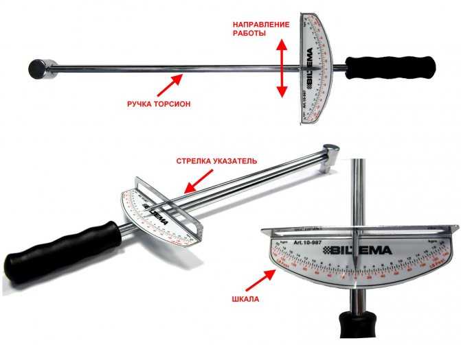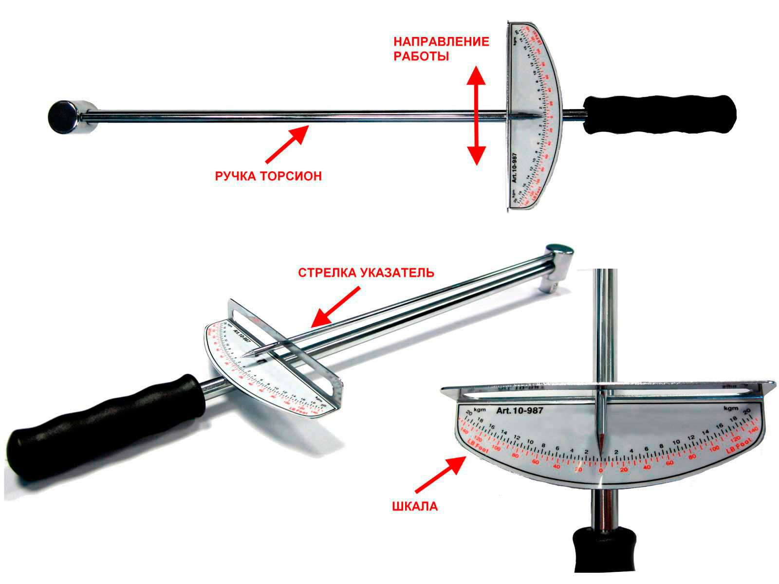 Стрелочный механизм позволяет устанавливать нужное значение момента и самостоятельно контролировать усилие затяжки. Существует два варианта: