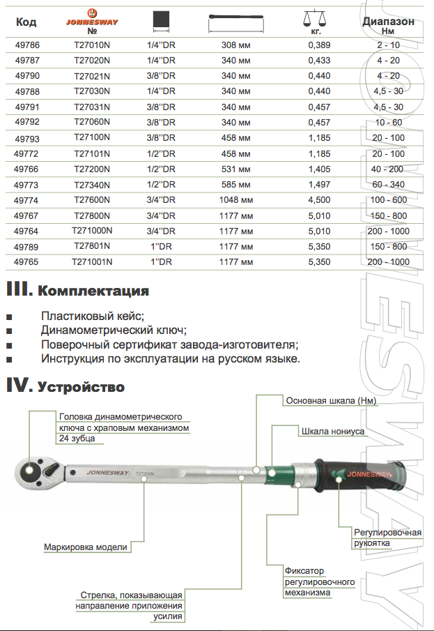 Данный динамометрический ключ KingTonyсерии 34423-1А обладает рядом преимуществ: