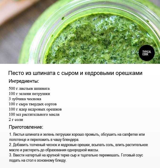 Еще один вариант: песто со шпинатом, для приготовления которого нужно: