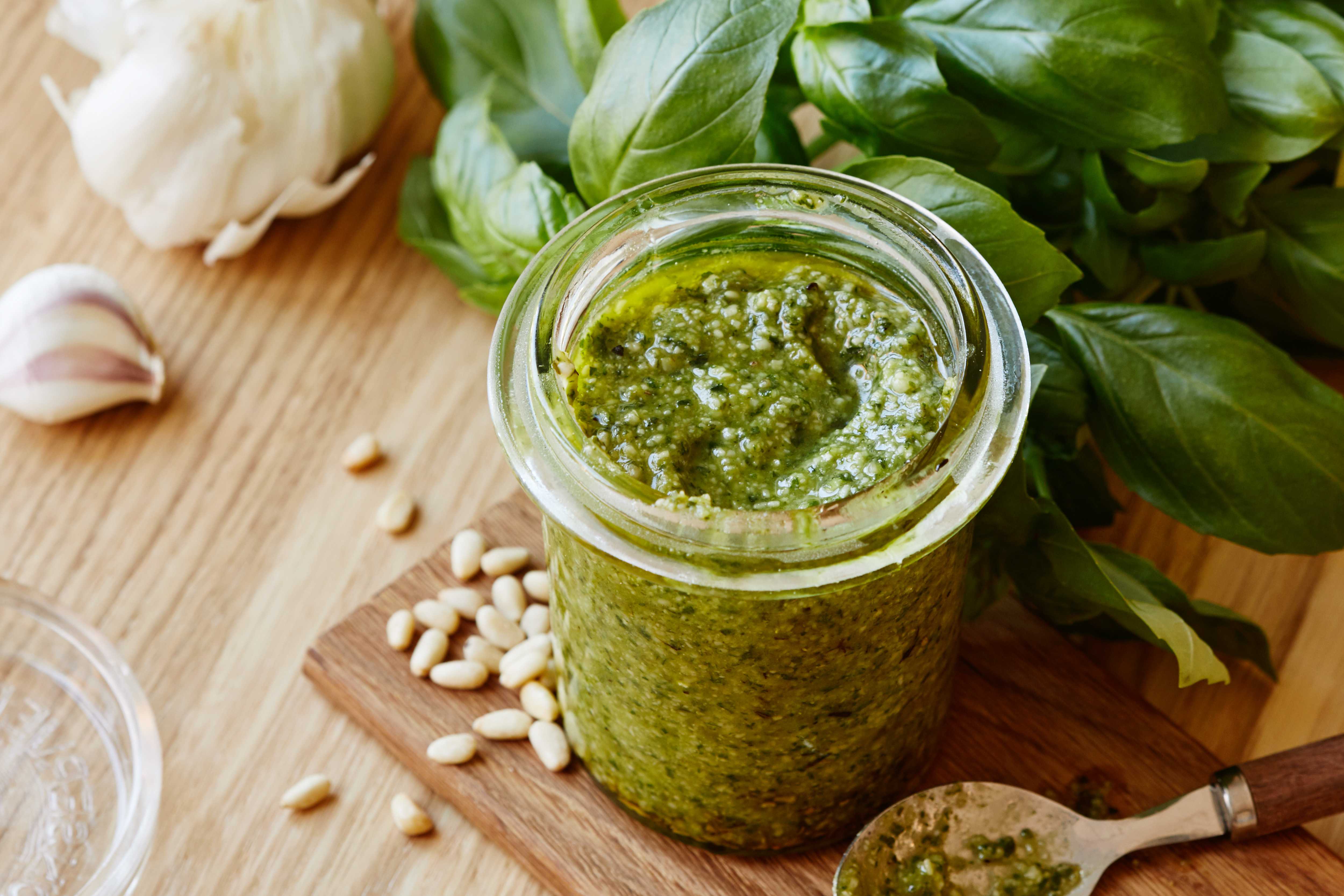Ингредиенты, которые могут повлиять на срок хранения домашнего соуса песто, включают: