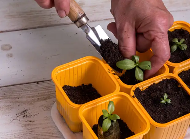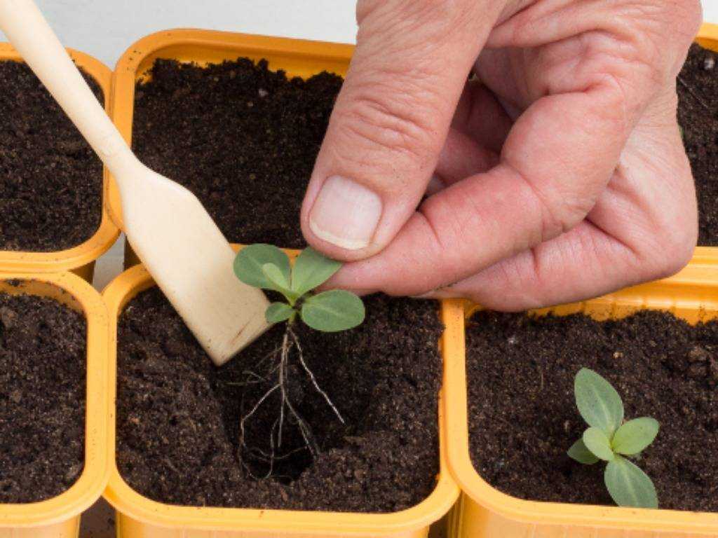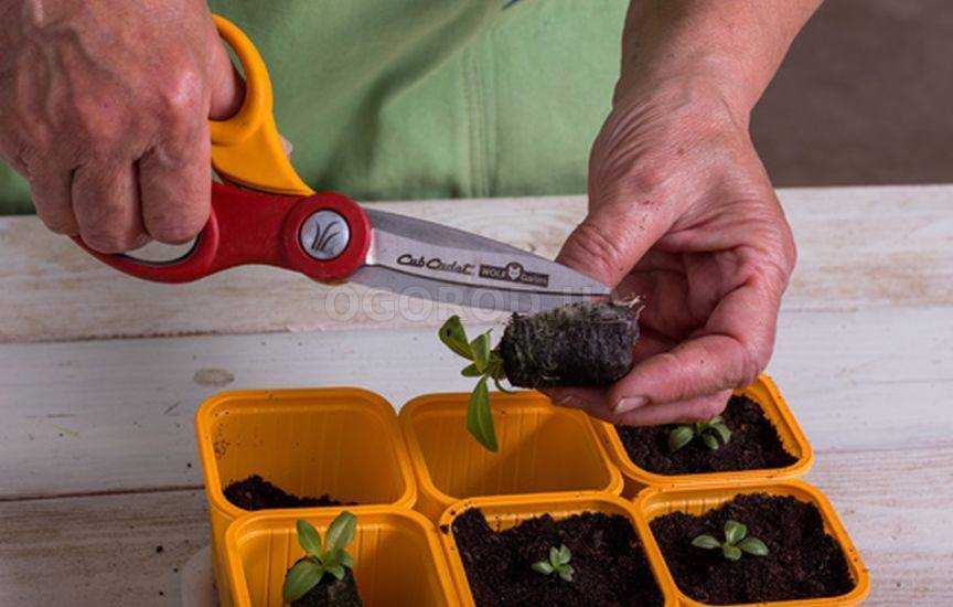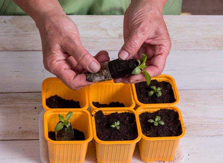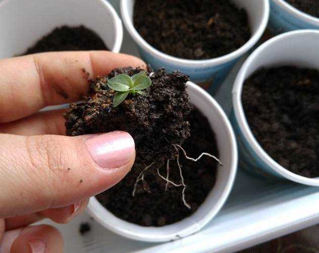 Делать это надо с осторожностью, методом перевалки, чтобы не повредить земляной ком. Для каждого саженца понадобятся горшочки примерно 8 см в диаметре