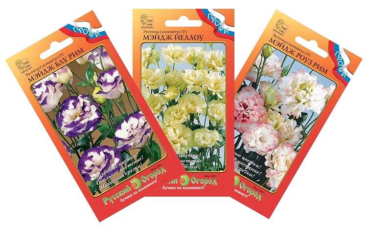 Посевной материал в специализированных магазинах продаётся обычно в бумажных пакетах, защищающих мелкие зёрнышки эустомы от физических повреждений, влаги и света. Семена гибридных сортов перед фасовкой могут заключать в гранулу из специального состава, имеющего многоцелевое назначение: защита от низких температур, вредителей и грибковых инфекций, а также минеральная основа, способствующая прорастанию семян в грунте.