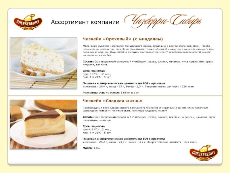 Срок годности и срок хранения чизкейка зависят от его ингредиентов и способа приготовления. Обычно свежий чизкейк может быть хранится в холодильнике в течение 3-5 дней. Однако, срок годности может изменяться и рекомендуется проверять индивидуальные рекомендации производителя.