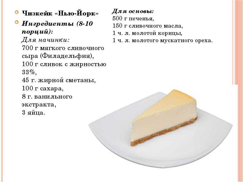 Нью-Йоркский чизкейк — это один из самых известных и популярных видов чизкейка в мире. Он характеризуется плотной текстурой и более высокой высотой. Нью-Йоркский чизкейк готовится на основе крем-сыра, яиц, сахара и ванили. Он отличается своей простотой и непревзойденным вкусом.