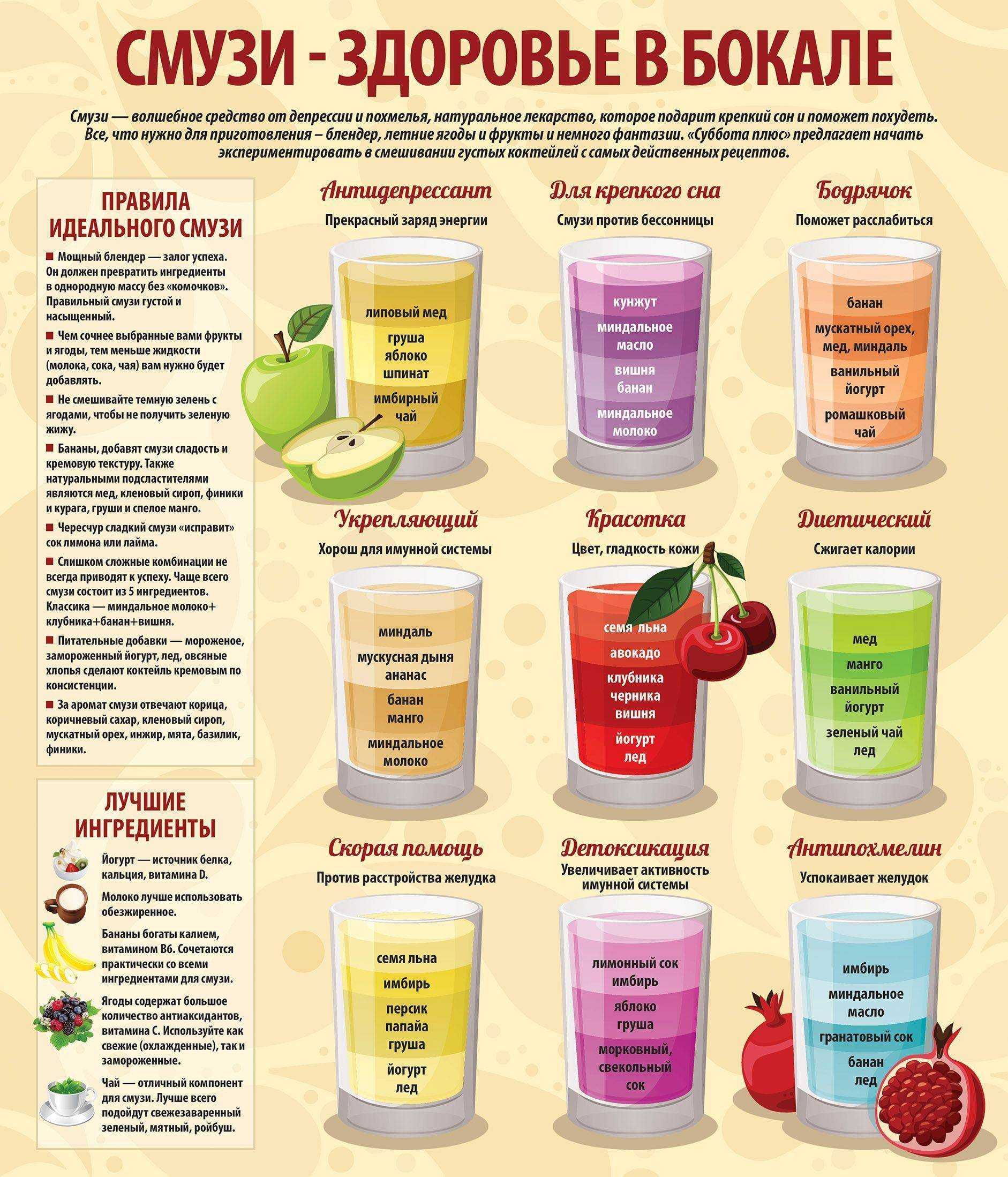 Вот популярные ингредиенты в домашних и приобретенных в магазине смузи: