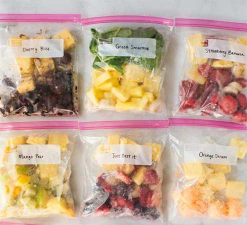 Если вы не любитель каждый раз мыть блендер, то вам подойдет именно этот способ сделать смузи-заготовку. В чашу блендера складываем все, что требует рецепт. Но колическов каждого ингредиента увеличиваем в 2-3 раза.