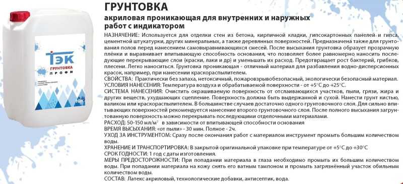 - Срок высыхания создаваемой грунтовочной пленки не должен превышать 24 часа при температуре окружающей среды не выше 4 градусов тепла, а при температурах от +4 до + 25°C – не дольше 8 часов.